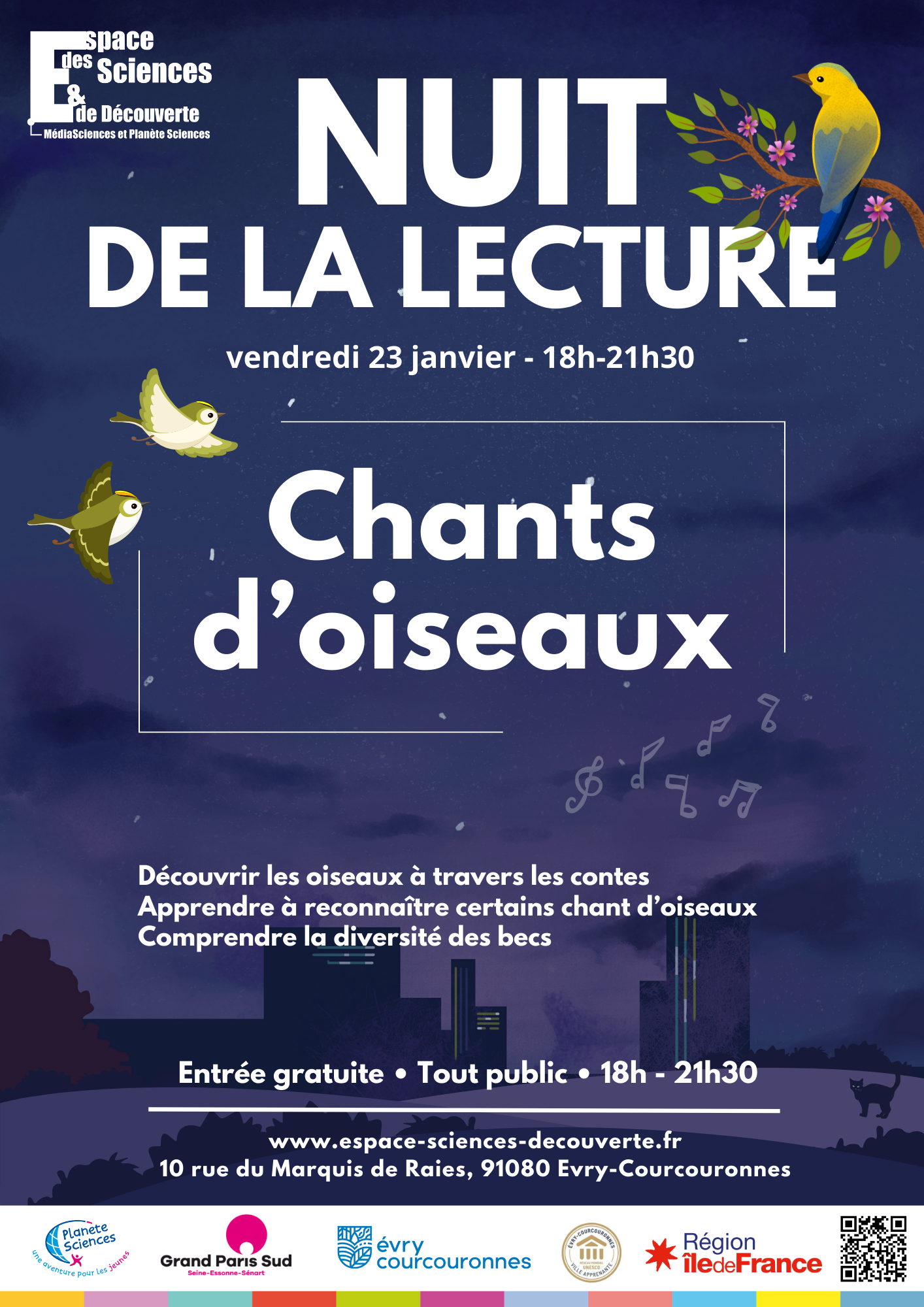 Espace des Sciences et de Découverte 10 rue du Marquis de Raies, Evry-Courcouronnes, FranceNuit de la Lecture 2026 - Villes et Campagnes A [...]